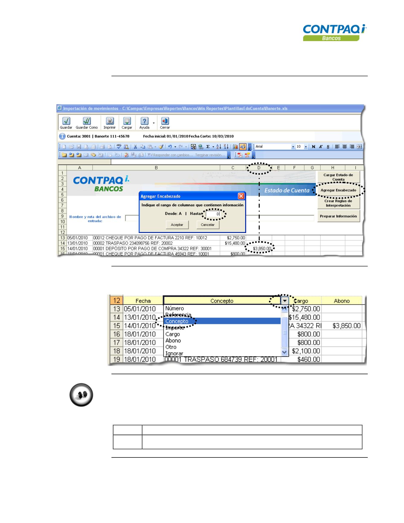 Ahora define cuántas columnas tienen datos y qué información hay en ellas.