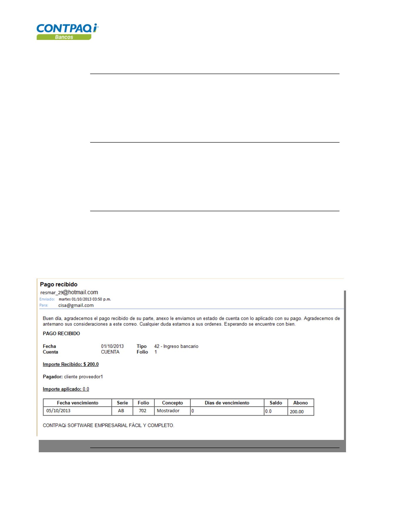 qué documentos pagó y cuál fue el importe de cada uno, así como reportarle el saldo que