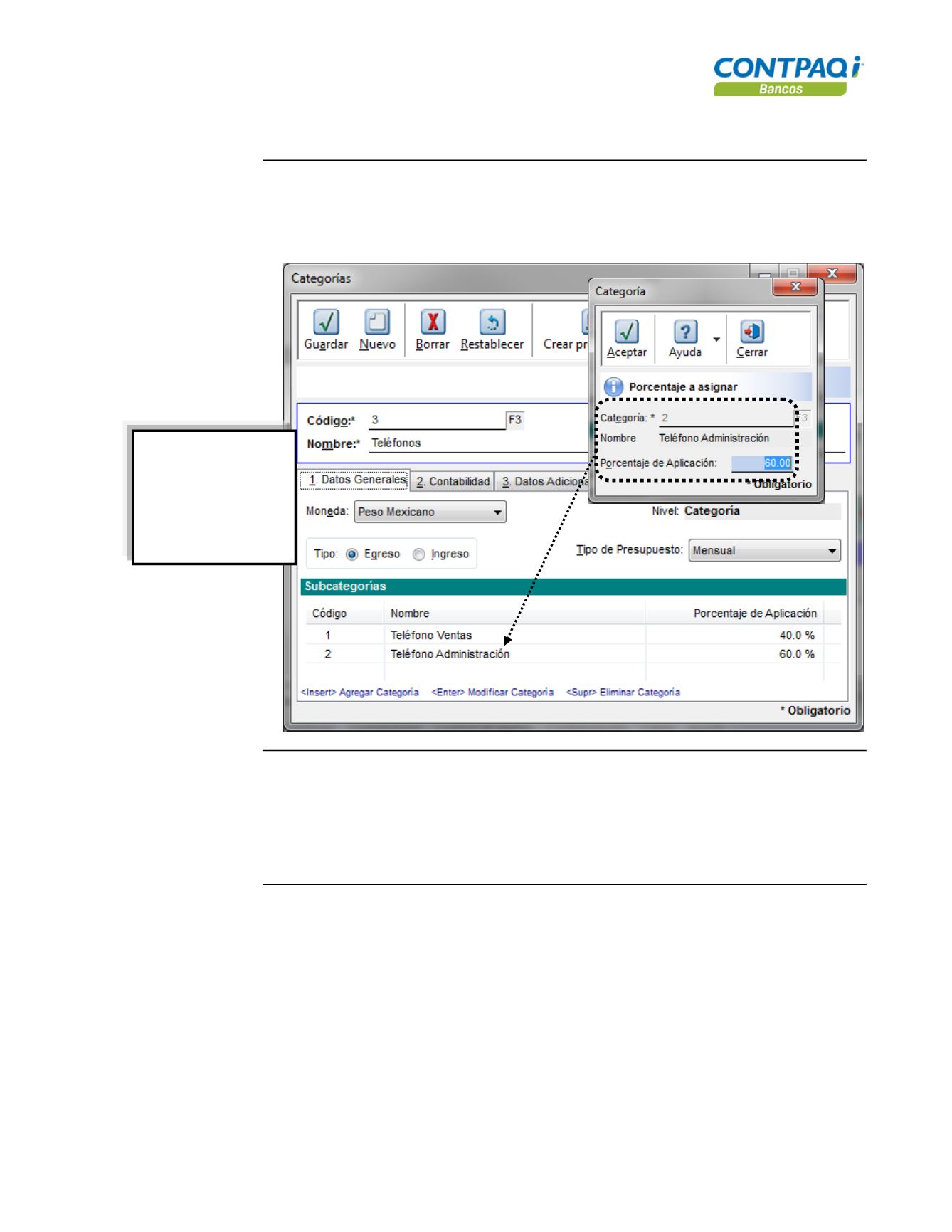 Para agrupar una categoría debes seleccionar la que servirá como Acumulable (Padre).