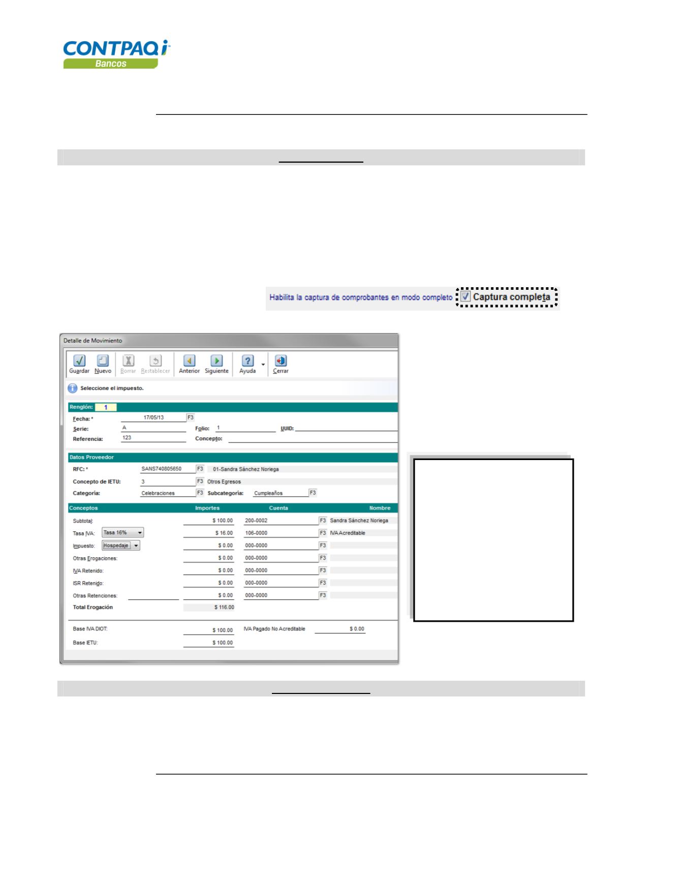 Con este tipo de captura solo podrás editar además de la identificación del comprobante, el total y datos bancarios;